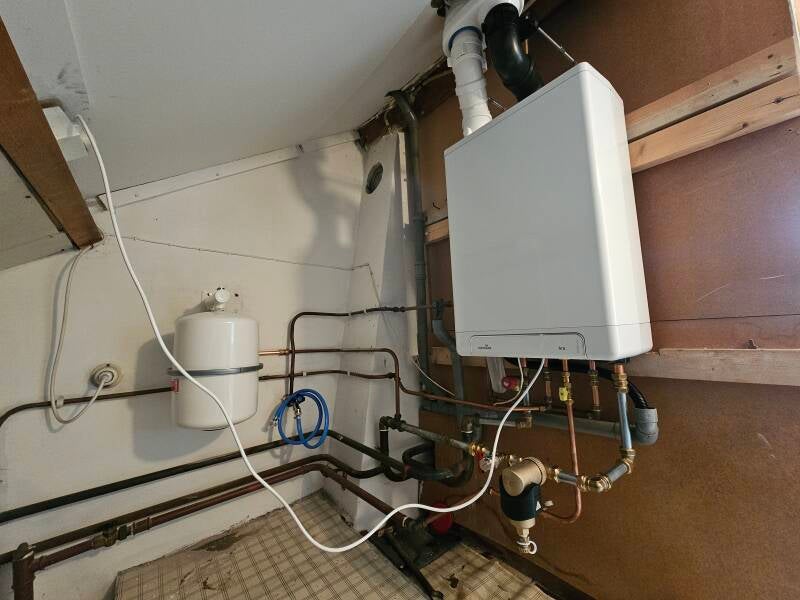 Ik heb bij deze klant een nieuwe cv-ketel aangesloten op het bestaande leidingwerk. Om de installatie zo lang mogelijk mee te laten gaan, heb ik er ook een vuilafscheider tussen gezet. Die haalt kleine metaaldeeltjes uit het water, zodat die niet in de ketel terechtkomen. Scheelt slijtage en verlengt de levensduur van het systeem.
